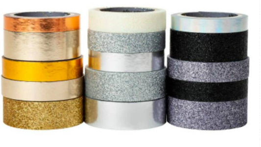 Scotch 15pk Washi Tape Black Gold Silver Glitter White Gray NEW